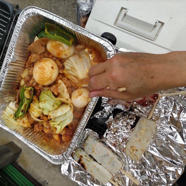 BBQの日。前日金沢から帰ったあとに鶏肉や茹で玉子を仕込んで私は燻製を。