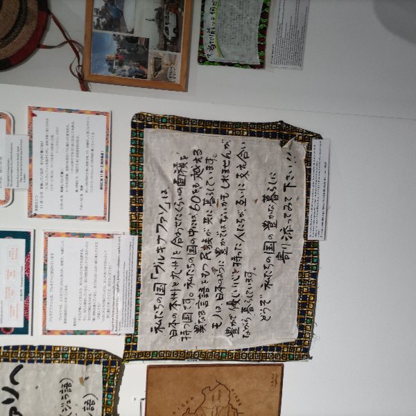 ブルキナファソ。正直一番展示方法が好き。手書きのぬくもり……