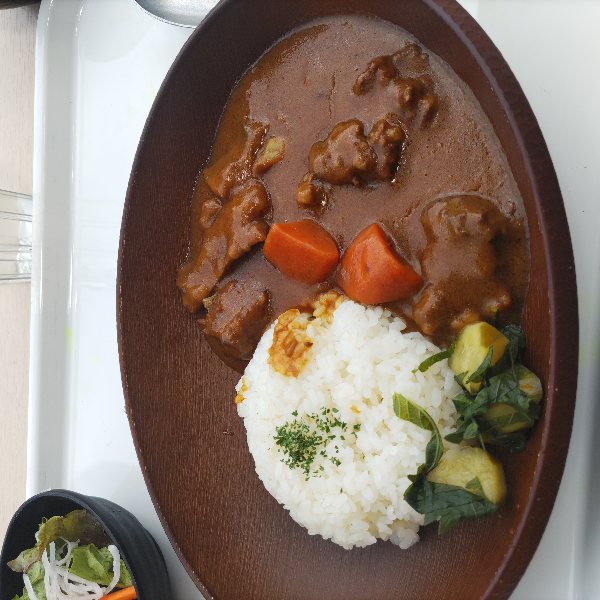 ロームシアター向かいの建物のカフェにてお昼。カレーは正義なのだ。