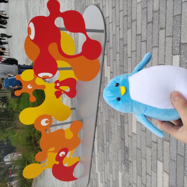 自作ぬいと大屋根リング、あとなんかモニュメント。結局大屋根リングは一日中強風のため上ること叶わず。ぬいも折角連れて行ったのに出す暇がなかったので最後の最後にこれだけ写真撮ったという。