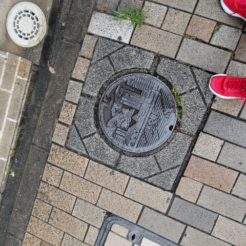 いしかわ動物園のマンホール。友情出演の二人の靴。