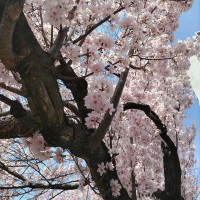これは近くの川沿いの桜。種類が違うのでちょっと早咲き、満開。春だねぇ。